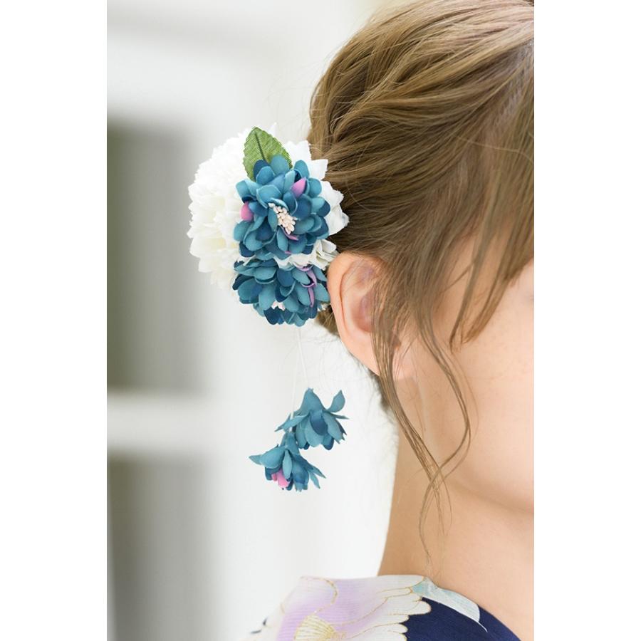 髪飾り 浴衣 成人式 花 コサージュ クリップ 振袖 子供 和装 白 青 ピンポンマム ポンポン菊 ぶら飾り Kaz7162tw 2981 きもの館 創美苑 通販 Yahoo ショッピング